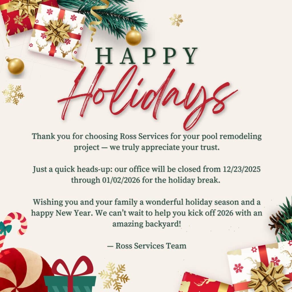 EXCELLENT Based on 338 reviews Posted on jim TTrustindex verifies that the original source of the review is Google. Did amazing job on my pool five star servicePosted on Matthew Buckley AdamsTrustindex verifies that the original source of the review is Google. Fantastic pool remodeling company to work with. Greg is honest and reliable. Helped us choose the perfect color for the tiling and pavers to match in our backyard. Not only were they fast at getting the job done but impeccable work quality too! I would highly recommend you give them a call for your pool job!Posted on s homannTrustindex verifies that the original source of the review is Google. Pool renovation.. fantastic job!Posted on Bruce CalderonTrustindex verifies that the original source of the review is Google. I had Ross resurface my pool a few years ago and not only did they give me the best price out of several estimates I received but they did excellent work. Everyone was professional and dedicated and they maintained a neat and clean job site. Fast forward to today, when I noticed an issue that needed some TLC and was outside the warranty period, Ross stepped up and handled it for me in the most professional way. Everyone i dealt with from the staff answering the phones to the crew that came out, including the manager Alex and the owner Greg, were top notch, professional and genuinely cared about their work product and made sure I was satisfied the entire way. They even followed up after the work was completed to make sure everything was absolutely perfect. I wholeheartedly recommend Ross for all your pool related needs!Posted on Rachel RyanTrustindex verifies that the original source of the review is Google. Did a really great job. Alex consistently communicated with me through out the process. I didn’t have to go anywhere to pick tiles he brought a great selection. The pool looks amazing.Posted on Ronald MartinezTrustindex verifies that the original source of the review is Google. Greg and his team were nothing short of incredible. The customer service was second to none and they were very prompt, communicative, and attentive. Job was complete in less than a week start to finish. Thank you Ross ServicesPosted on Courtney RussoTrustindex verifies that the original source of the review is Google. From the beginning of getting a quote to the end result of our completed pool deck we were very happy with the services of Ross Services! Our technician, Brandon, was amazing and very professional. His work, done by hand, is intricate and flawlessly designed.